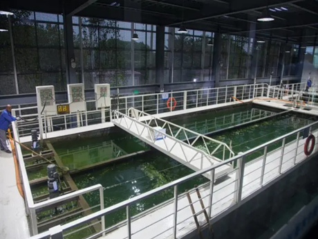 采用高效可調(diào)式渦井取藻、藍(lán)藻囊團(tuán)破壁、一體化二級強(qiáng)化氣浮等核心技術(shù),岸上站點(diǎn)藻水分離系統(tǒng)集成了藍(lán)藻打撈、脫氣沉降、氣浮分離、脫水等多個(gè)環(huán)節(jié)的技術(shù)和設(shè)備,形成了可規(guī)模化和工廠化處理藍(lán)藻的基站。適用于藍(lán)藻水華長期規(guī)律性、大范圍聚集區(qū)域的常態(tài)化應(yīng)急處置。